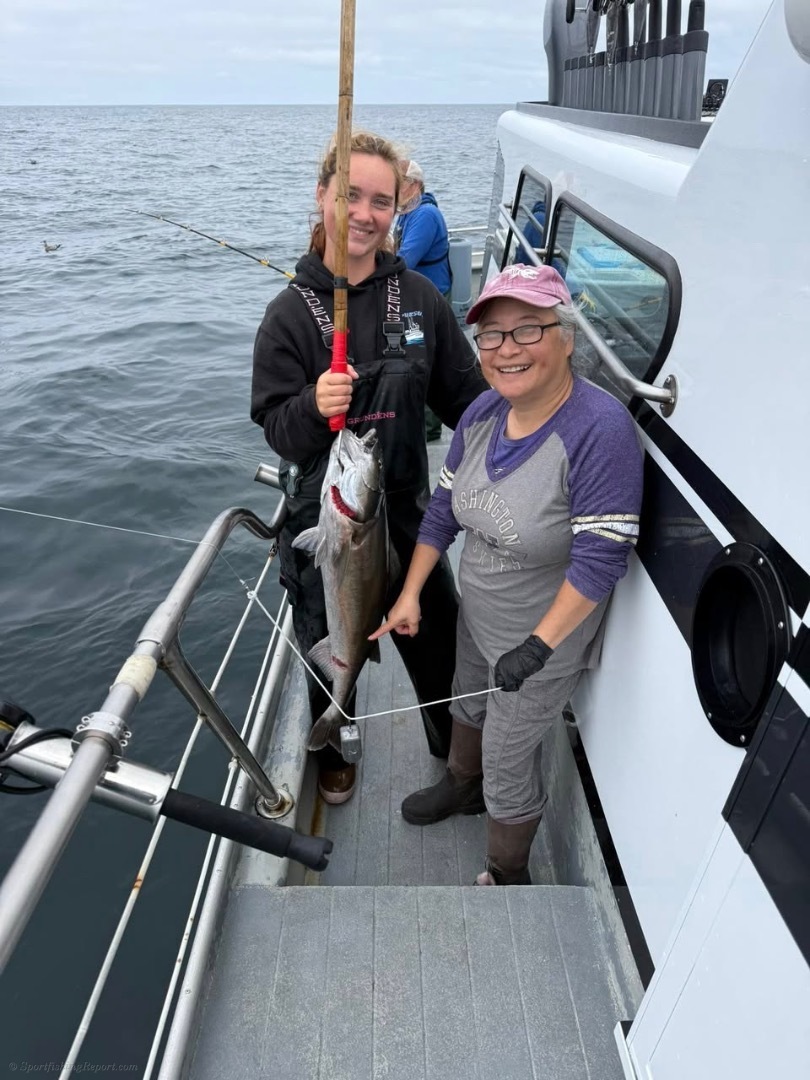 2 Anglers charter fishing for Halibut caught limits of Halibut (2), limits of Ling Cod for passengers and crew (, 2 Black Cod, and 3 Coho salmon. Pretty epic Ling Cod bite today for us as we continued to release Ling Cod while targeting Halibut. Also got to make a quick stop on the ride in for some wide open salmon fishing. Kieu is currently leading the weekly derby for her Ling Cod. Pretty epic day with massive whale sightings, Orcas, Blues, and Humpbacks all jumping, massive bird flocks banging the water on bait balls.
