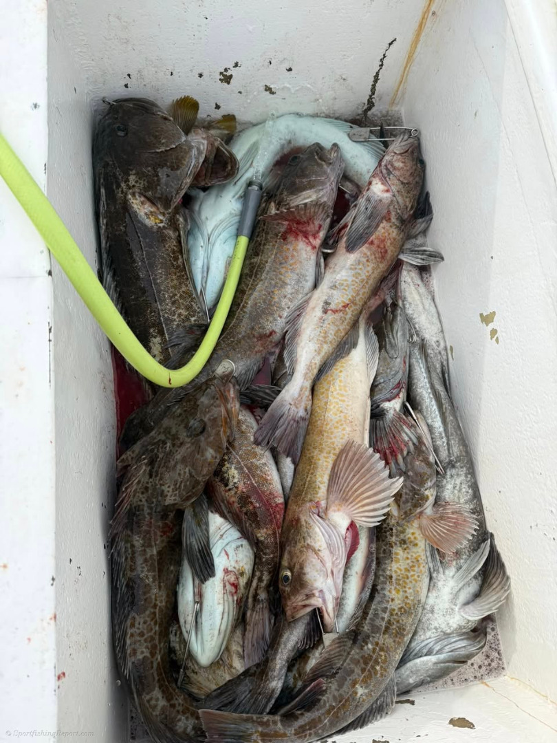 Buckets of bass and limits of ling cod for all 11 of us today by 10:00! Fantastic fishing!